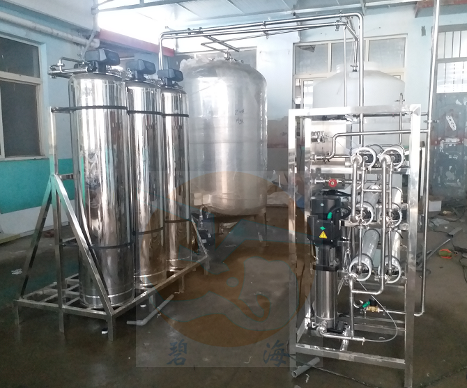 原水箱-原水泵-石英砂過濾器-活性炭過濾器-全自動軟化器-重金屬過濾器-保安過濾器-高壓泵-反滲透膜-304不銹鋼無菌水箱